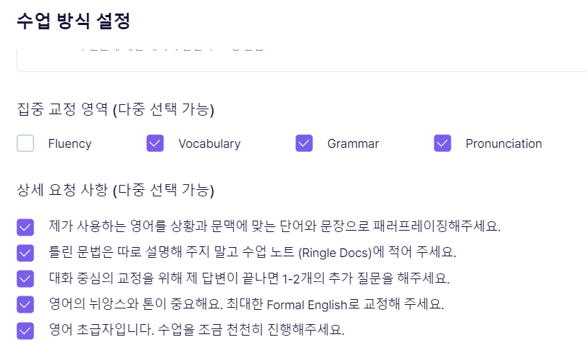 현재 나는 링글에서 하는 예습->수업(교정,paraphrasing,피드백)->복습(피드백 셀프리뷰)의 과정이