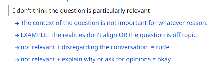 이 날 수업중에 I don't think the question is particularly relevant 라는 문장을 튜터가 말했는데,